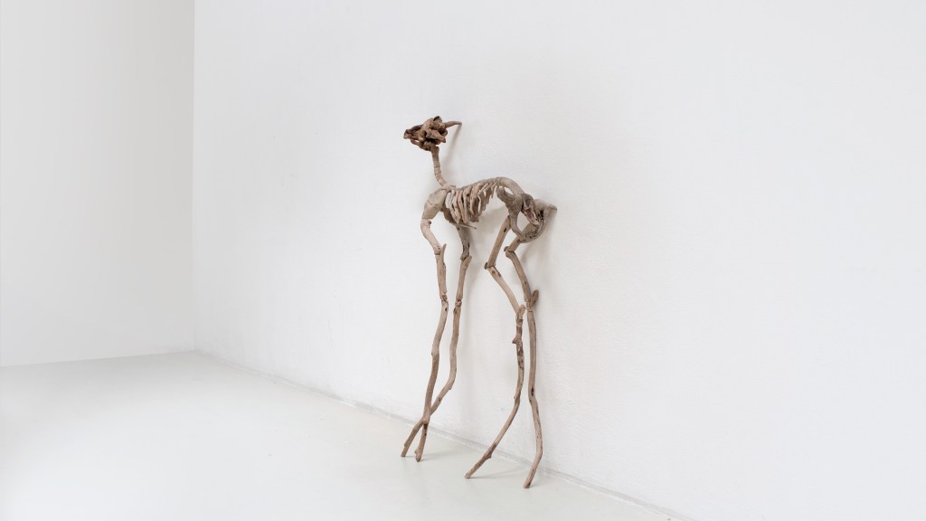 G. Longo: They do it in so many ways. There is an innate aspect in the structures which seem slender, delicate and fragile in appearance; complete or incomplete anatomies reveal fractures, voids and concavities, thus letting themselves be run through by the space around them without resistance. Then there is the context that affects the colour of the surfaces, dimensions, perspective and correlation with the viewer. Exhibiting these works in a neutral place, within an archaeological park or nature, will undoubtedly have different outcomes. And, ultimately, the relationship between these two aspects, thus the presence of one in each other. So, slender wooden pieces emulate tails through conical protrusions of the wall (Threesome, 2020), a backbone is functional to curve and hook two tubular elements arising from soil (Morph, 2021) or a rod with ribs props up a wall, sinking in it, leaving one in doubt as who the actual support is (Collapse, 2022).