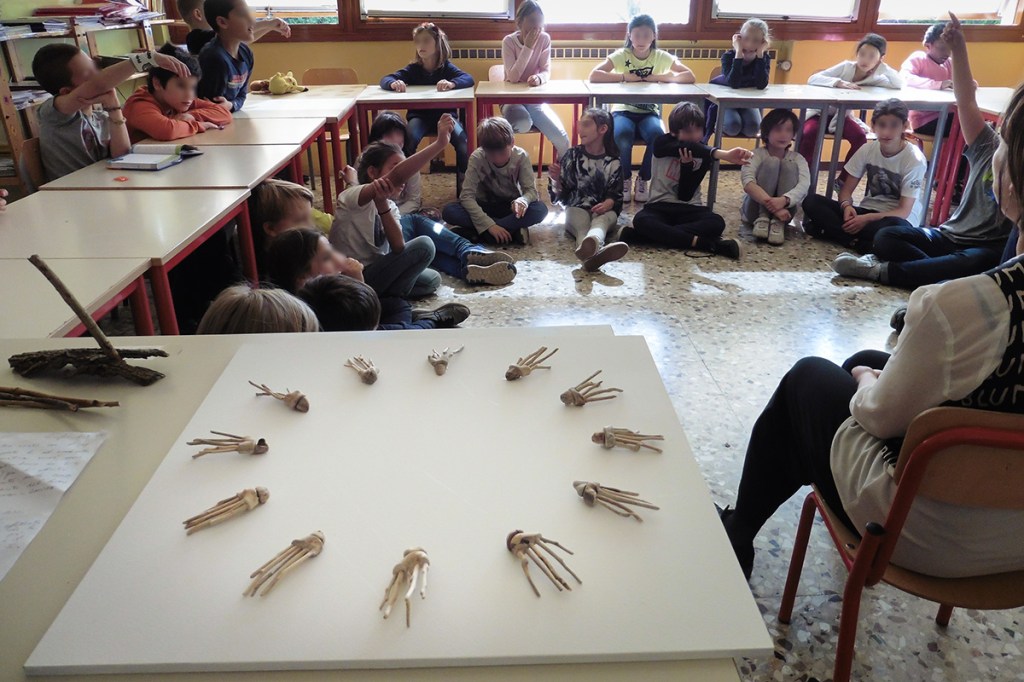en / “Just in Time: the skeletons’ game” is the title of an art workshop for children with the artist Giovanni Longo. The project involved over 100 children in the creation of a combined work inspired by the passing of time through a creative method repeated into three phases: research, selection and composition. It all started with a “toy box” specially prepared for the meetings.
